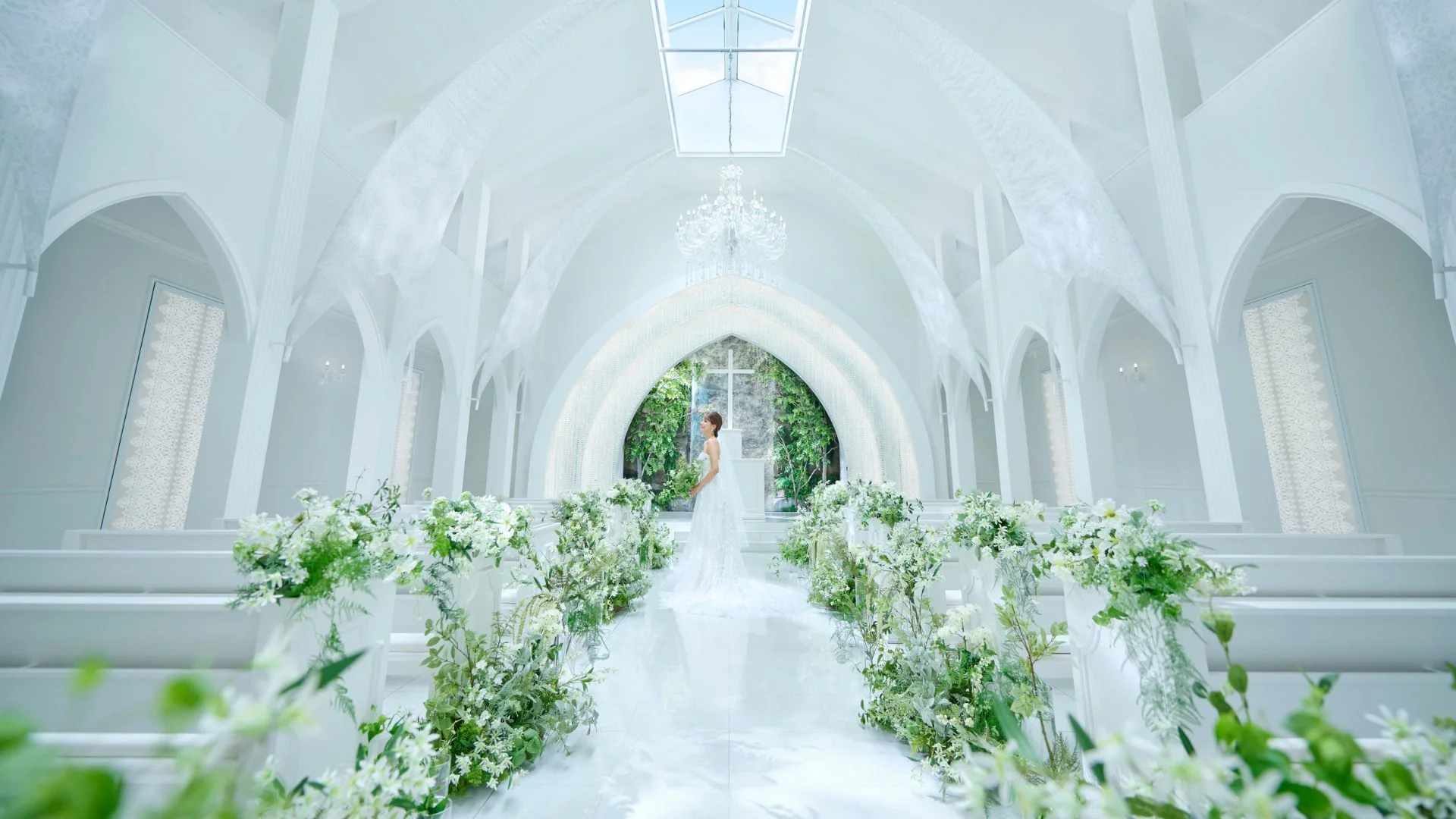 チャペルの中はガラスで覆われていて背景は自然がたっぷり詰まっているため、四季折々の彩りを堪能できるのも素敵ですね。